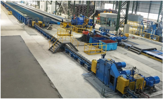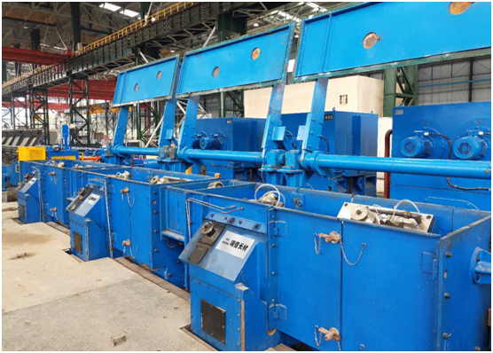 晋钢高棒生产线由中冶京诚负责EPC总承包,轧线采用全连续高速无扭轧制,最大轧制速度45m/s。该生产线定位于建筑用材小规格棒材,生产规格为∅10mm~∅16mm的螺纹钢,配备了中冶京诚新一代CMM-I系列模块化230精轧机机组、高速伺服倍尺飞剪、夹尾器及转毂系统,粗中区采用第五代高刚度短应力线轧机,具备终轧速度快、产量高、成材率高、产品表面质量高、产品尺寸公差控制精确等优点。