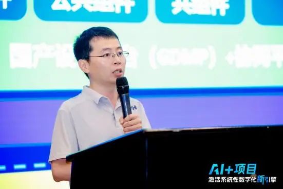 紧接着,4位主题演讲者分别从不同角度分享了AI+项目的实践经验。第一位演讲者来自北京市市政工程设计研究总院有限公司数字智慧院副院长、高级工程师韩宝良先生,他分享了《市政工程BIM正向设计探索之路》。第二位演讲者是广联达科技股份有限公司产品管理部总监罗伟先生,为我们揭晓《广联达自主平台GDMP底层平台》的奥秘。