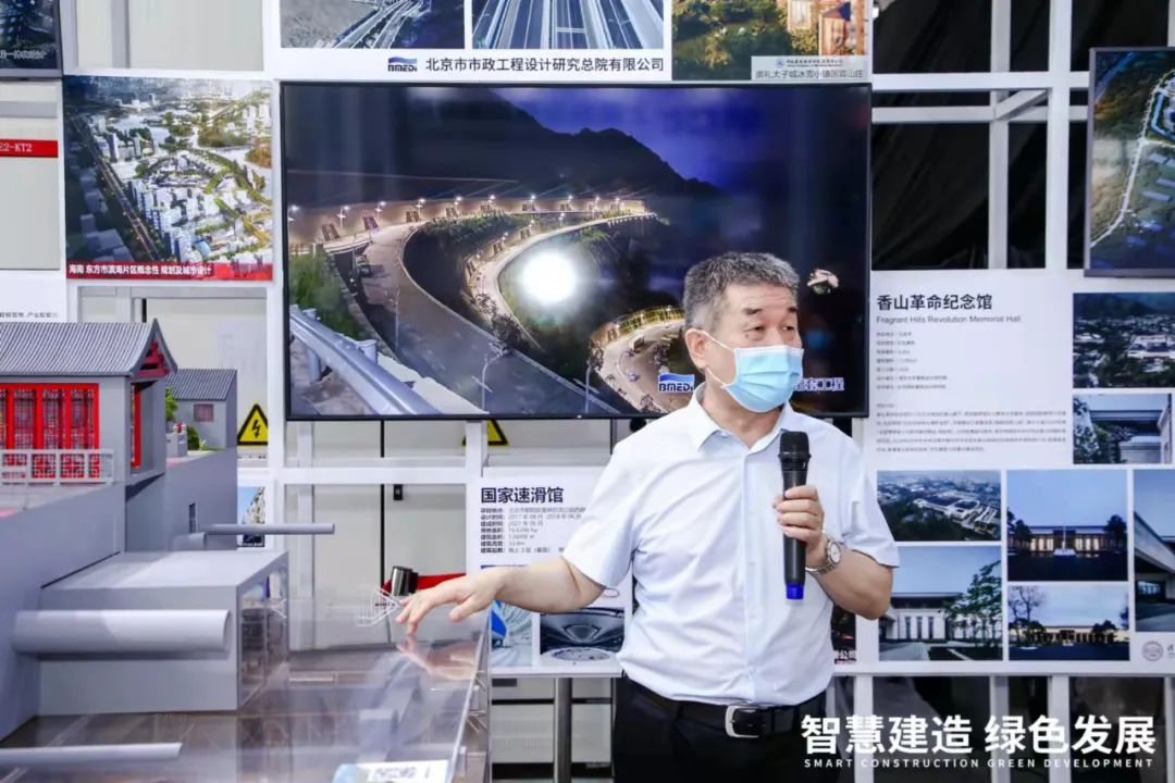 市政公用工程分会会长、北京市市政工程设计研究总院有限公司副总经理艾凌,结合展示模型,亲自对“白塔寺历史文化街区受壁街市政道路及地下停车场建设项目”的创新点、技术难点和示范性效应等向与会人员做了深入浅出的讲解。