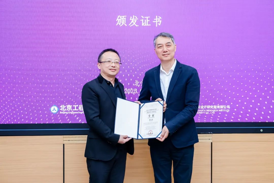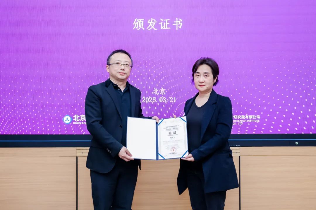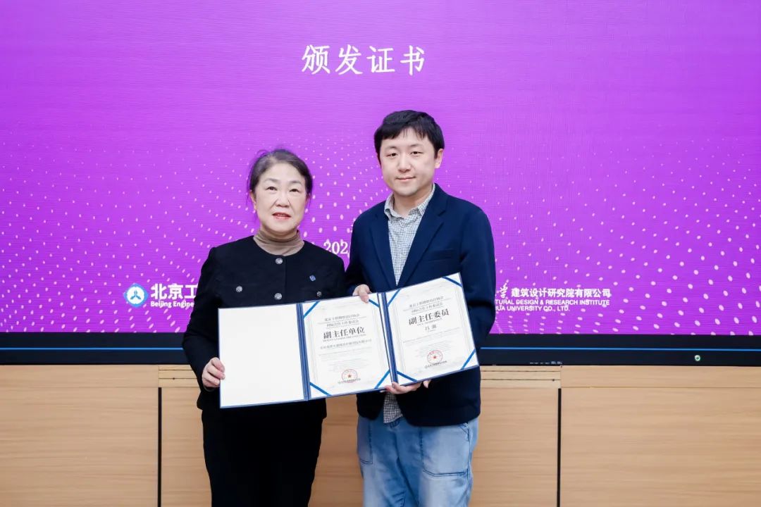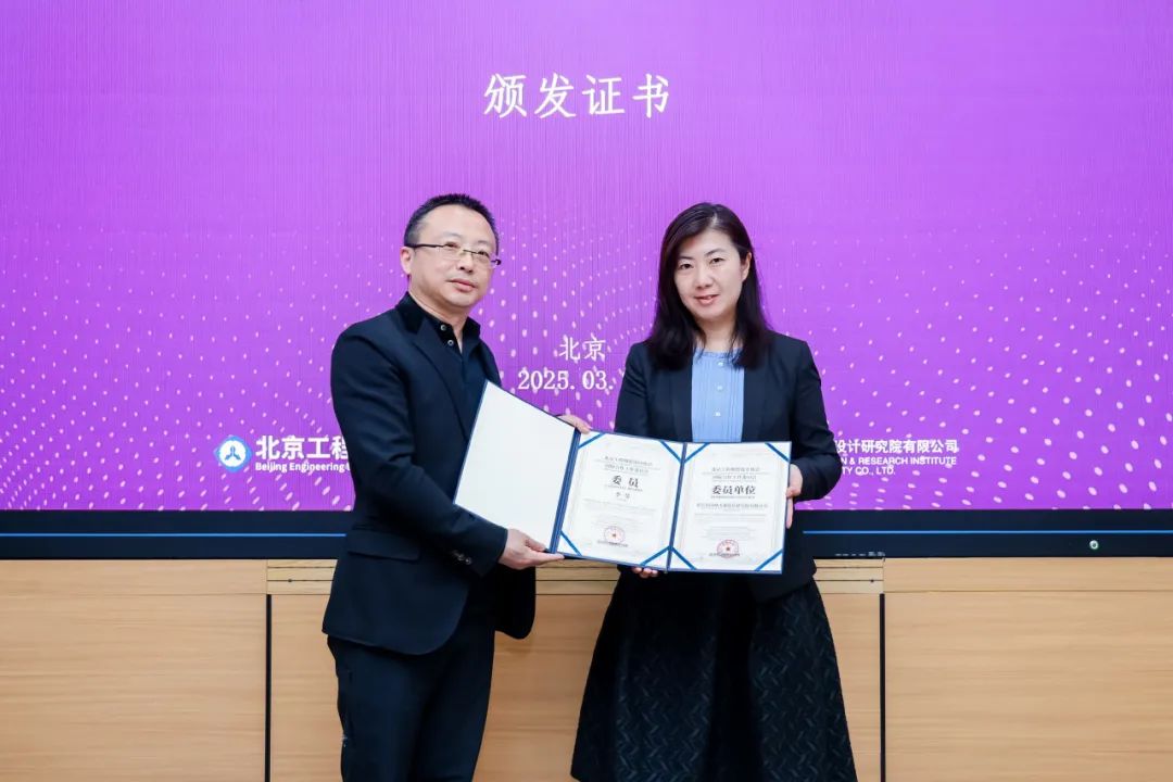随后,与会成员单位审议并通过了《国际合作工作委员会工作条例》2025年修订稿,并投票选举产生了新一届委员会领导机构。胡颐蘅秘书长及国际合作工作委员会主任委员、清华大学建筑设计研究院有限公司副院长、副总建筑师莫修权为第二届成员单位及单位代表颁发了证书。