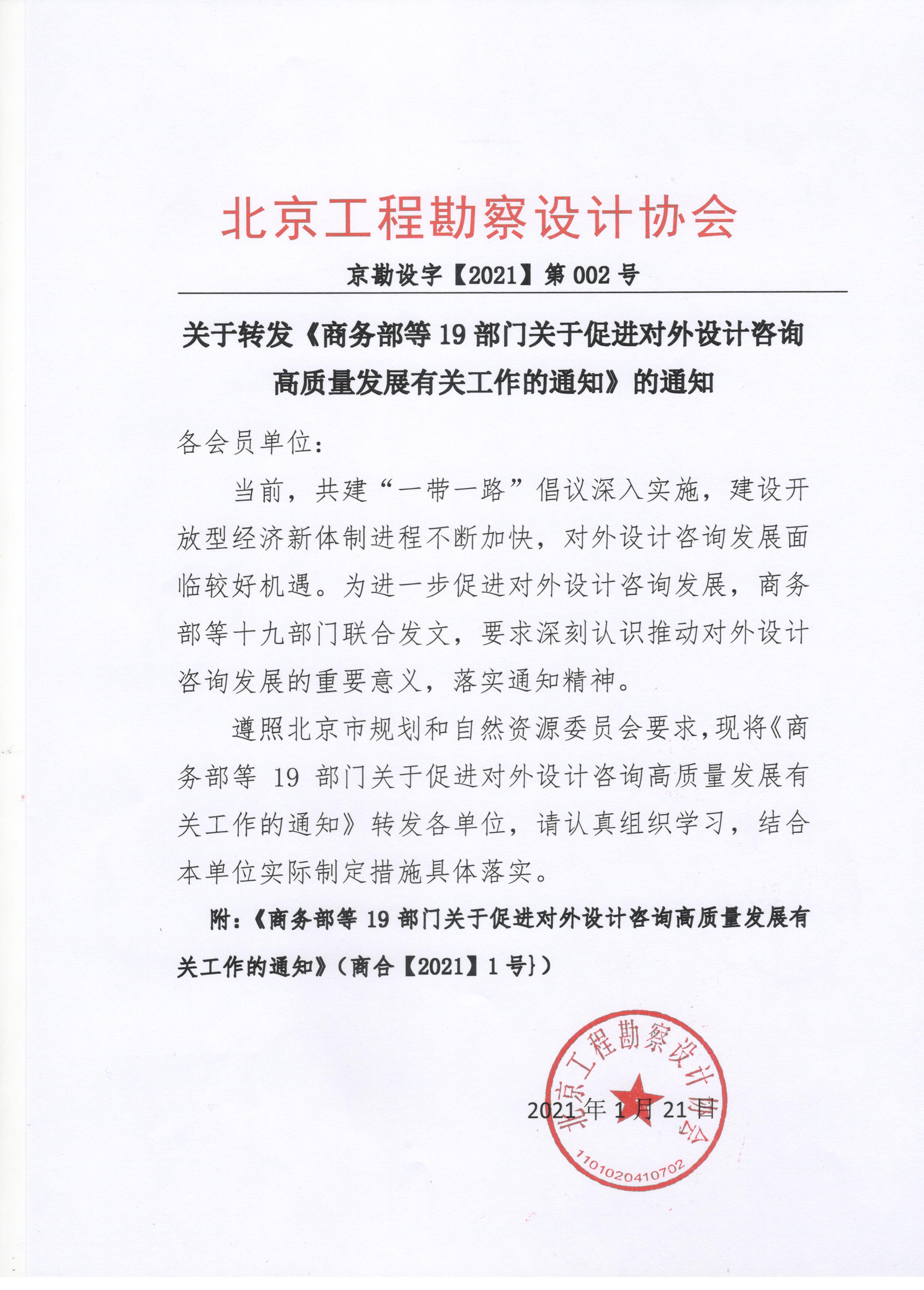 附:《商务部等19部门关于促进对外设计咨询高质量发展有关工作的通知》(商合【2021】1号})