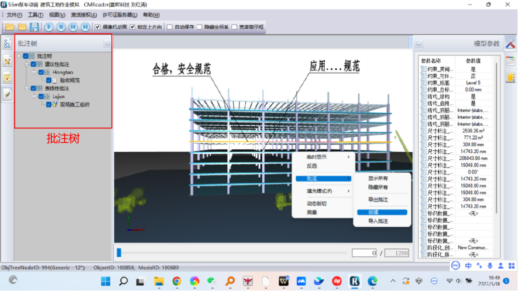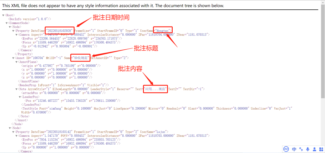2、基于转换后的三维轻量化模型,直接进行本地审阅、批注和反馈,一键导出批注意见xml文件,发送到任何协作方(邮件、QQ、微信均可),一键导入即可获取当前批注的可视化意见。
