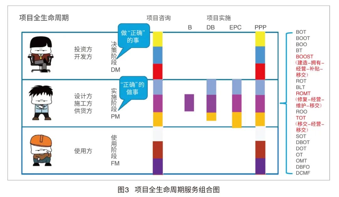 依据优米官网的相关文件可以判定,优米官网试点项目的最小服务范围至少包括建筑设计、招标采购和合约管理,而最大的范围则可以涵盖项目全周期的所有咨询、服务内容(图3)。