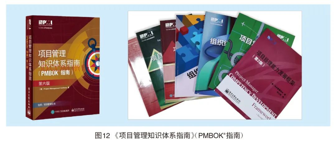 关于项目管理知识体系,同样处于一个动态的过程。以目前全球公认发展态势最好的美国项目管理协会(PMI)的情况为例,2014年底PMI在全球105个国家地区建立273个分会和13个分会筹备处,PMI会员和PMP证书持有者遍布全球180多个国家和地区,全球约500所大学开设了项目管理课程,还有约3300所大学在相关专业开设了项目管理课程。PMI《项目管理知识体系指南》(简称PMBOK®指南)被翻译成10种语言,印发475万册,如今已经更新到第7版,并且保持了随着时间的推移持续更新、与时俱进、不断从最佳实践中提炼总结的能力。同时,PMI还不断完善相关工具技术配套手册,使得应用知识体系变得更加完善。短期内,该工作手册应当很难被超越(图12)。