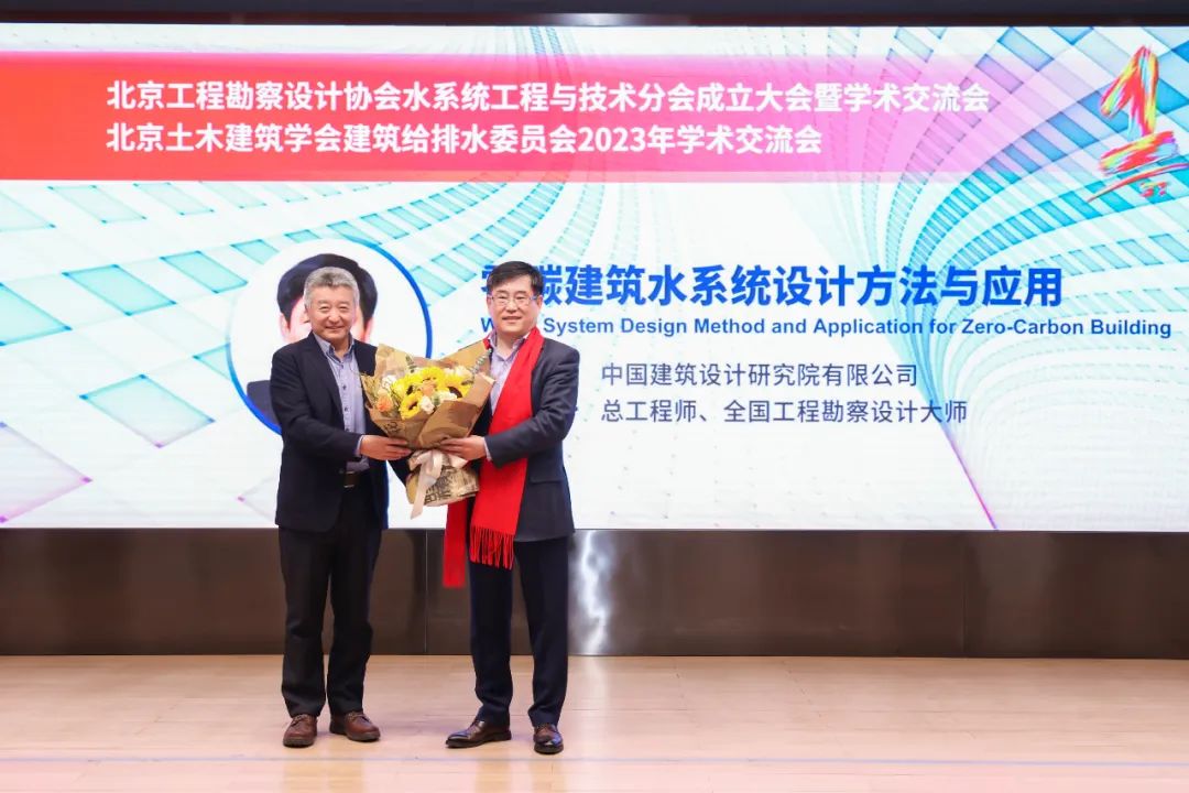 下午,水系统分会联合北京土木建筑学会建筑给排水委员会召开了一场盛大的学术交流会,来自北京地区设计院的200多位给排水专业人员报名参会,任南琪院士、彭永臻院士、张韵大师和赵锂大师分别做了《城市水系数字孪生规划与智慧管控》、《关于我国城市污水处理排放标准的思考与建议》、《韧性城市内涝灾害防治的思考与实践》、《零碳建筑水系统设计方法与应用》学术报告,提供了一场精彩纷呈的学术饕餮盛宴。