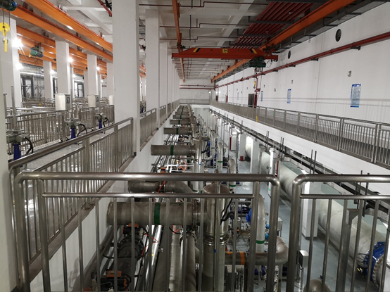 进水中工业污水占比约30%(以印染废水为主),存在水质波动大、部分时段碳源不足、溶解性不可生物降解COD高(约41~49mg/L)等问题,污水处理技术难度大,同时项目需兼顾人防设设防要求,是目前“国内最大的工业+市政混合污水地下式处理厂”。