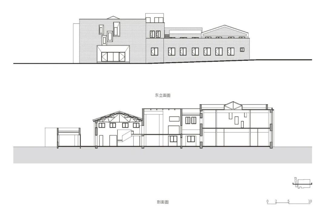 选定合适的结构加固方式发挥既有建筑的现有特色。相较一些极具特色的工业遗产建筑或者具有时代特色的旧建筑,现状建筑远谈不上特别高的改造价值,但是通过踏勘和分析,现状建筑也有一些因为不同时期建造痕迹所带来的特色,如坡屋顶、烟囱、不同标高的屋面空间等等。在选定结构加固方式时,尽可能的减少对原有建筑空间的影响,发挥现状建筑的特色。